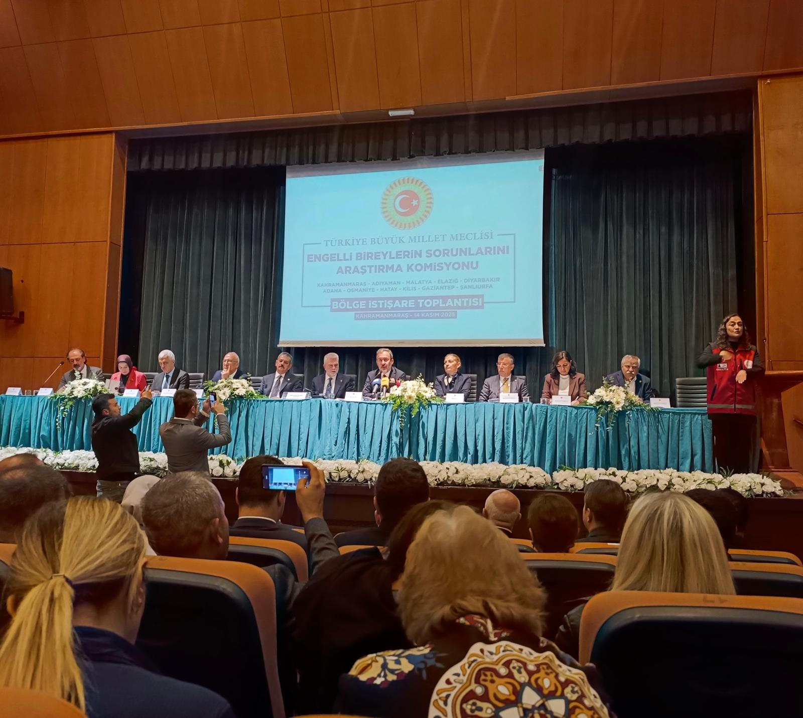 Türkiye Büyük Millet Meclisi Engelli Bireylerin Sorunlarını Araştırma Komisyonu’nun Kahramanmaraş’ta düzenlediği Bölge İstişare Toplantısı, 6 Şubat depremlerinden etkilenen 11 ilin temsilcilerini bir araya getirerek engelli bireylerin deprem sonrası sağlık, eğitim ve gündelik yaşama ilişkin ihtiyaçlarını değerlendirdi. Eski Gençlik ve Spor Bakanı Mehmet Muharrem Kasapoğlu, Kahramanmaraş Valisi Mükerrem Ünlüer, Rektörümüz Prof. Dr. Alptekin Yasım, Büyükşehir Belediye Başkanı Fırat Görgel ile vali yardımcıları ve milletvekillerinin katıldığı toplantıda psikososyal destek, rehabilitasyon ve fırsat eşitliği başlıklarında çözüm önerileri ele alındı.