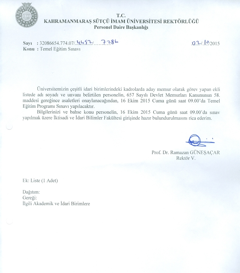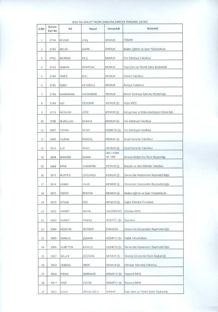 Sınava Girecek Personel Listesini İndirmek İçin Tıklayınız