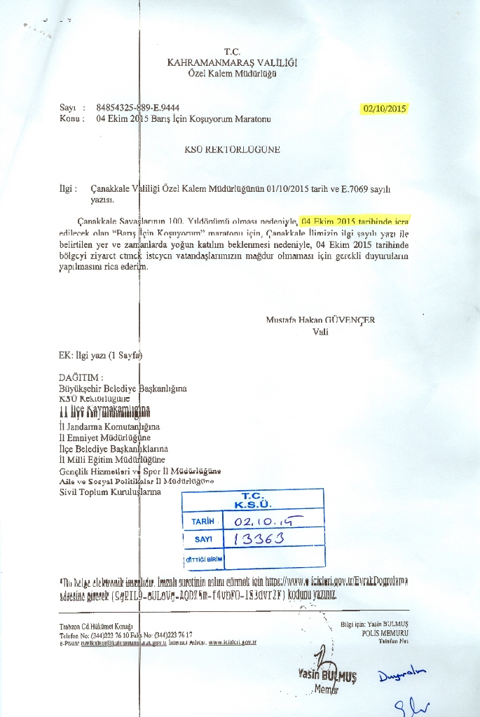 Kahramanmaraş Valiliği Duyurusu: Barış İçin Koşuyorum Maratonu