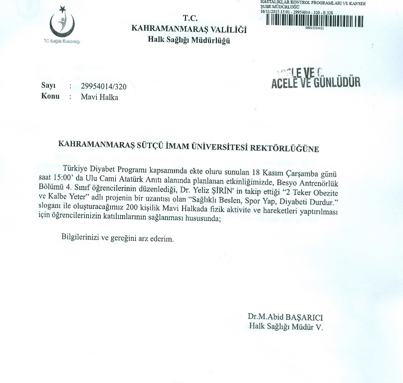 Kahramanmaraş Halk Sağlığı Müdürlüğü Duyurusu: Mavi Halka