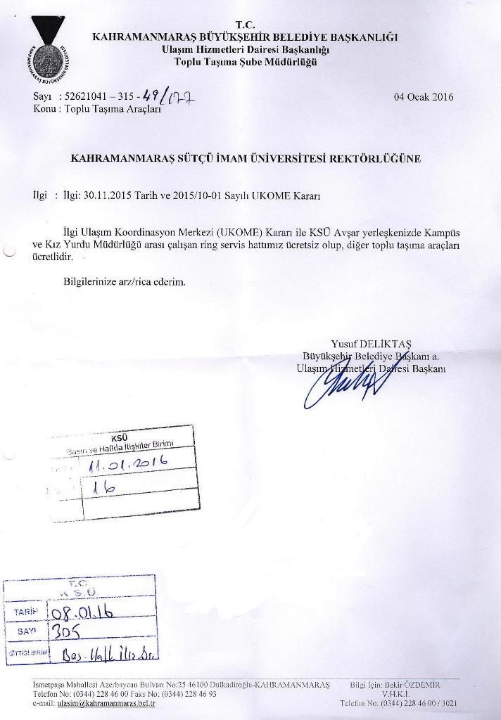 Toplu Taşıma Araçları Ücretleri Hakkında Duyuru