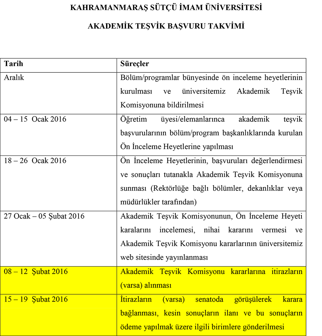 AKADEMİK TEŞVİK BAŞVURU TAKVİMİ