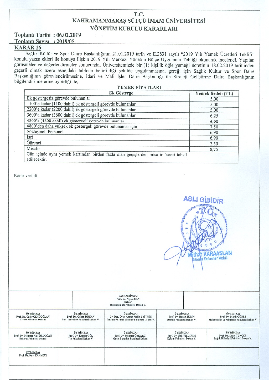 2019 Yılı Üniversitemiz Yemek Ücretlerinde Güncelleme Yapılmıştır