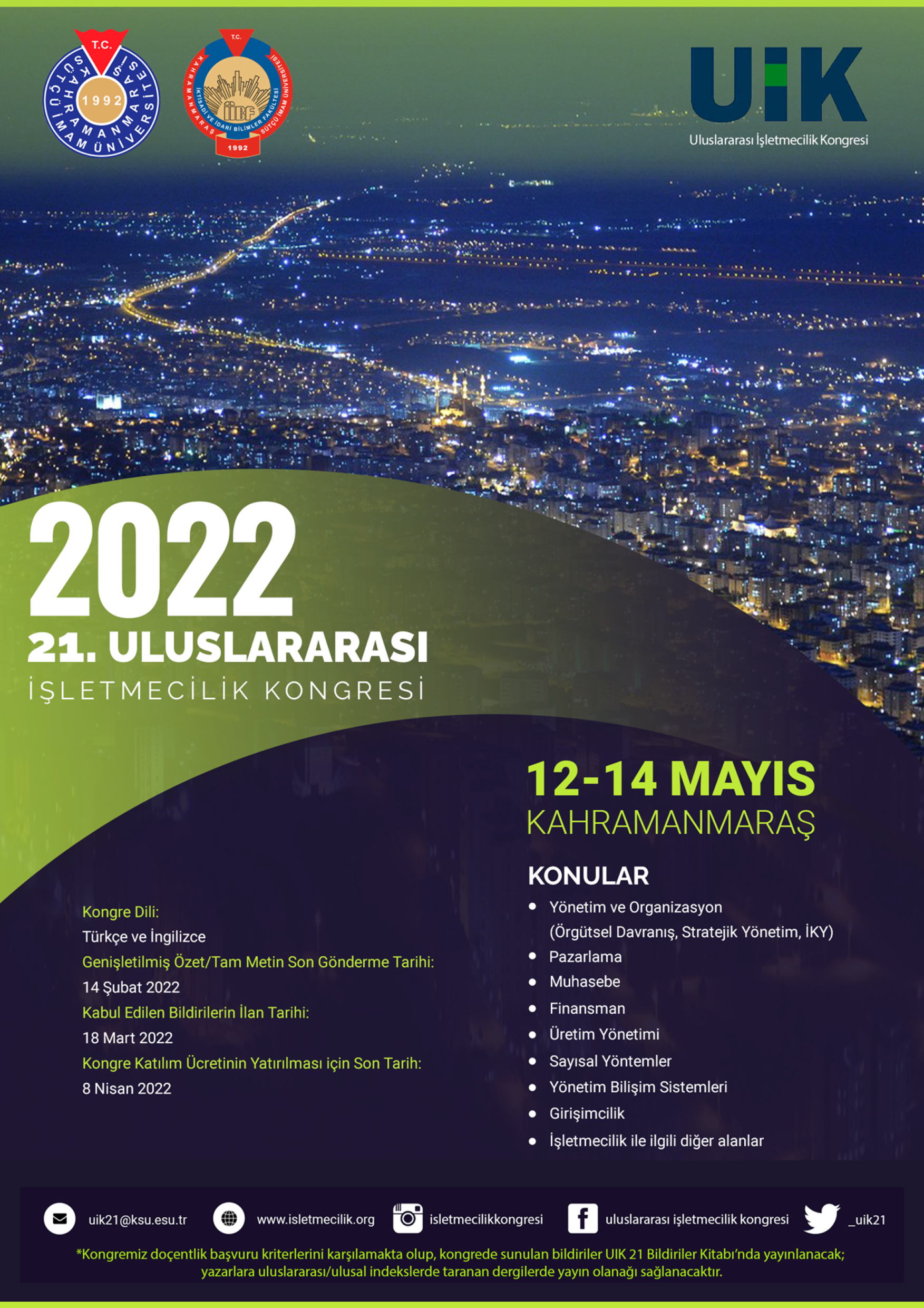 İktisadi ve İdari Bilimler Fakültesi Dekanlığı İşletme Bölüm Başkanlığı 21. Uluslararası İşletmecilik Kongresi