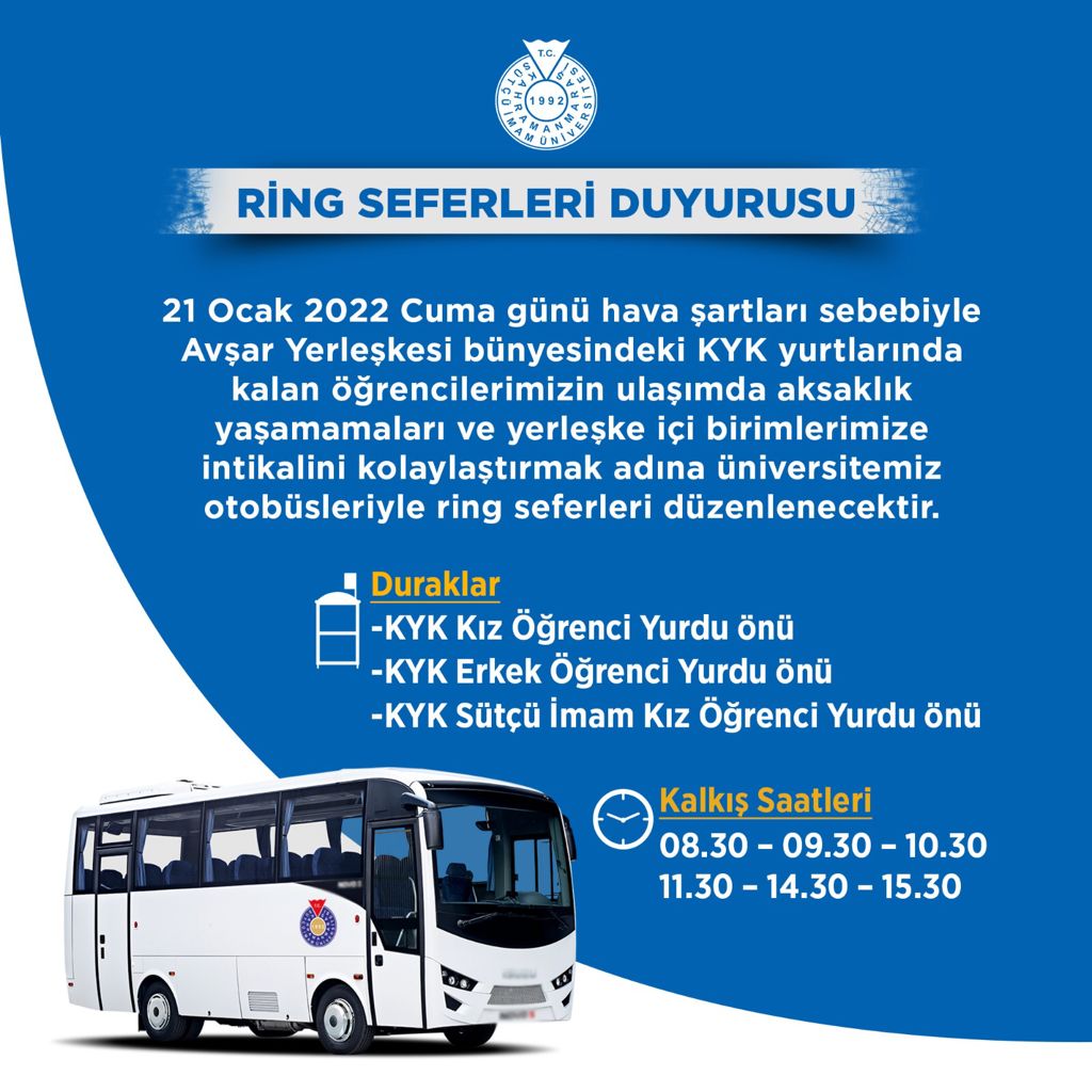 21 Ocak 2022 Cuma Günü Üniversitemiz Avşar Yerleşkesi İçerisinde Ring Seferleri Gerçekleştirilecektir