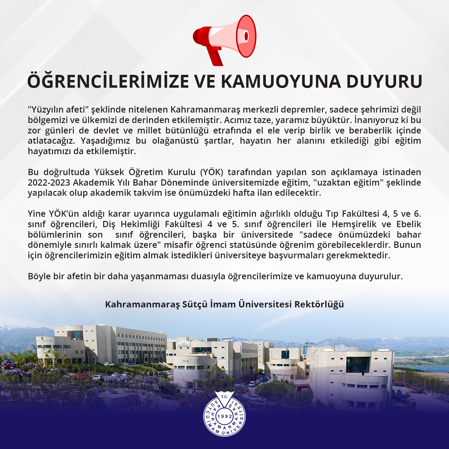 Öğrencilerimize ve Kamuoyuna Duyuru