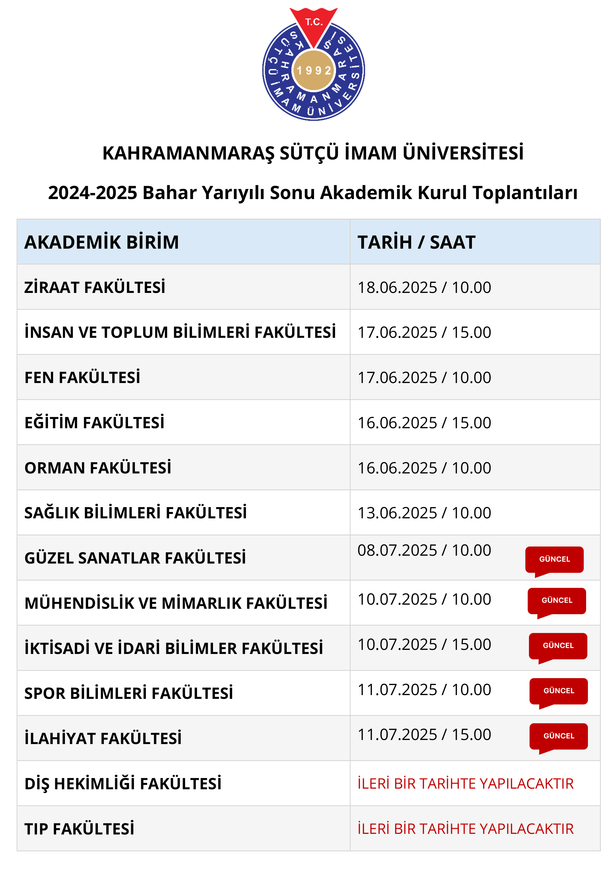 2024-2025 Bahar Yarıyılı Sonu Akademik Kurul Toplantıları