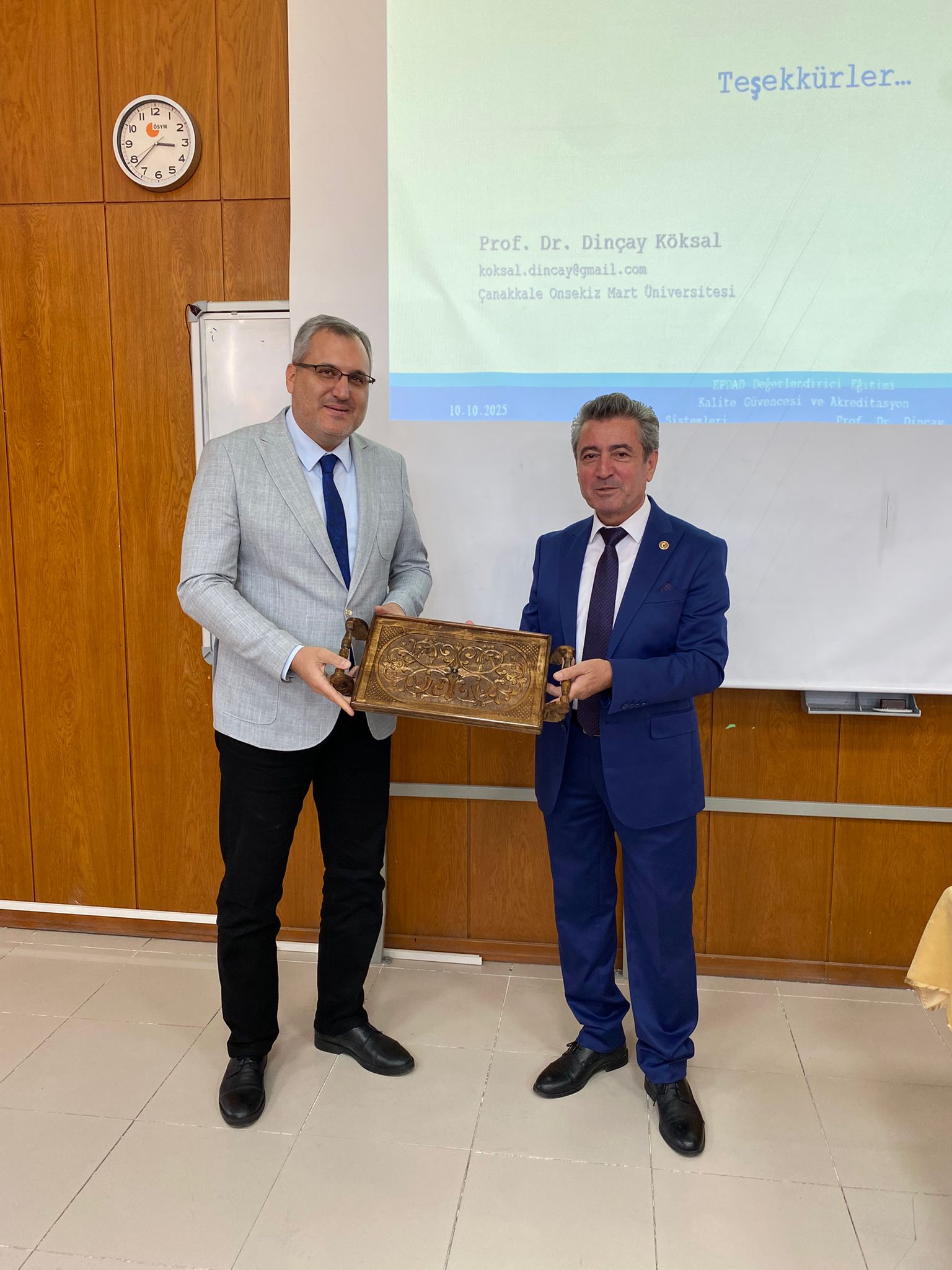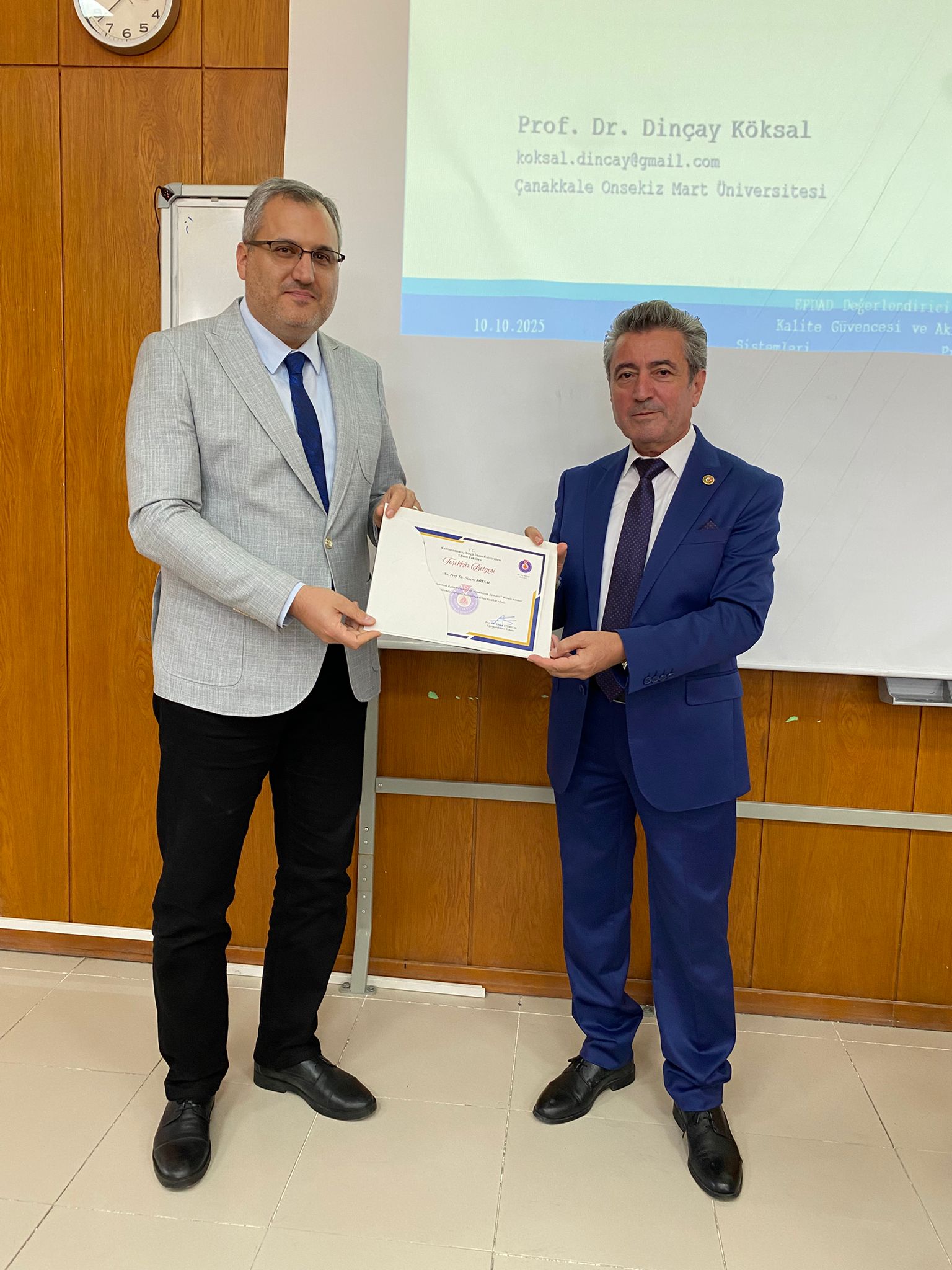 Program sonunda, katkılarından dolayı Prof. Dr. Dinçay KÖKSAL’a Fakültemiz Dekanı Prof. Dr. Ahmet TEKBIYIK tarafından teşekkür belgesi ve hediye takdim edildi.