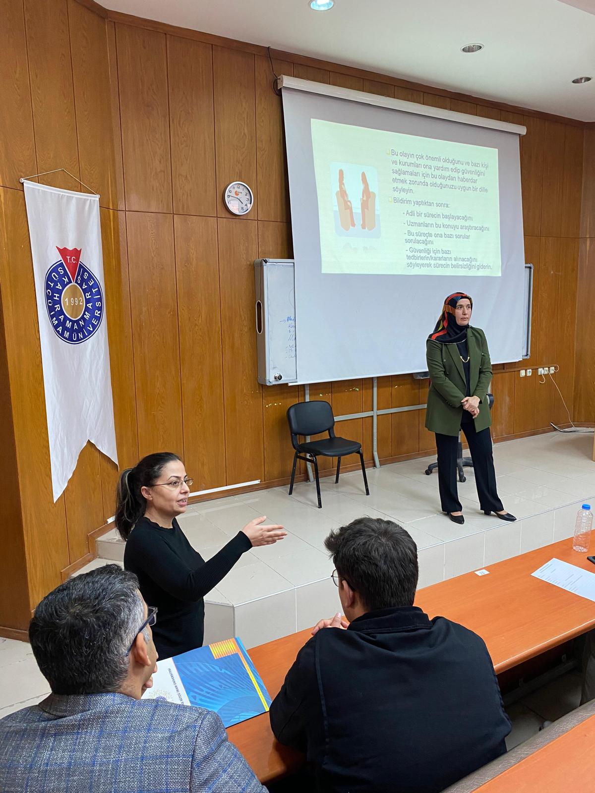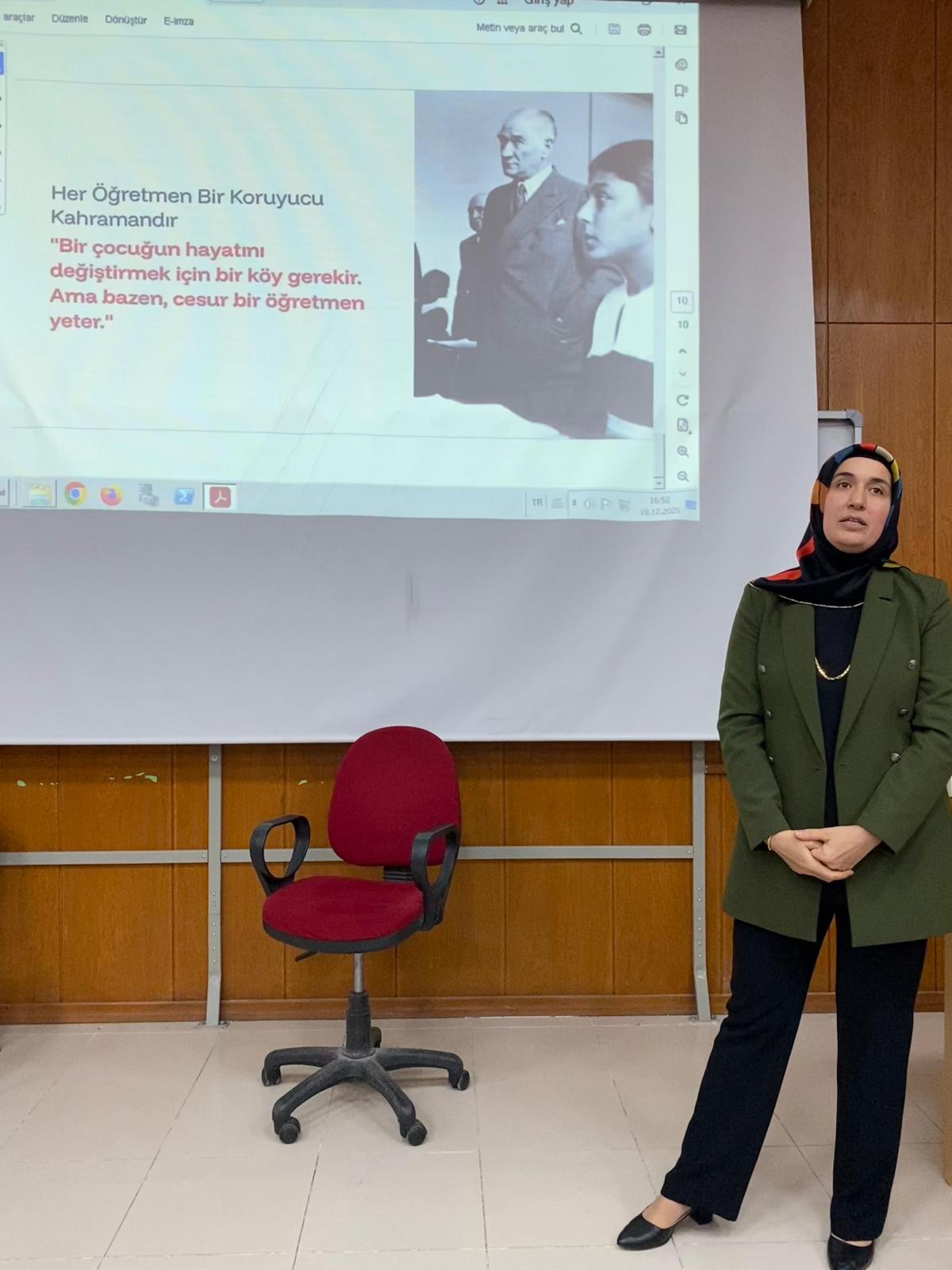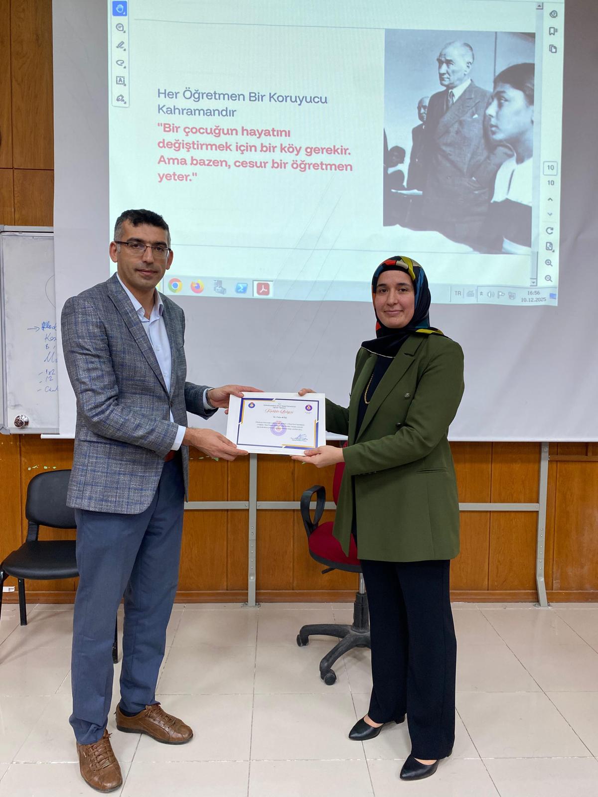 Fakültemiz öğretim üyesi Dr. Öğr. Üyesi Sevda Gülşah Yıldırım tarafından yürütülen “Çocuk İstismarı ve İhmali” dersi kapsamında, Dr. Fulya Köse tarafından “Okul Temelli Müdahale- İfşa Durumu” konulu bir seminer verildi. Seminerde öğretmen adaylarına, alanda karşılaşılabilecek olası durumlara yönelik müdahale süreçleri ve dikkat edilmesi gereken noktalar hakkında önemli bilgiler aktarıldı. Programın sonunda, katkılarından dolayı Dr. Fulya Köse’ye Dekan Yardımcımız Doç. Dr. Yusuf Ergen tarafından teşekkür belgesi takdim edildi.