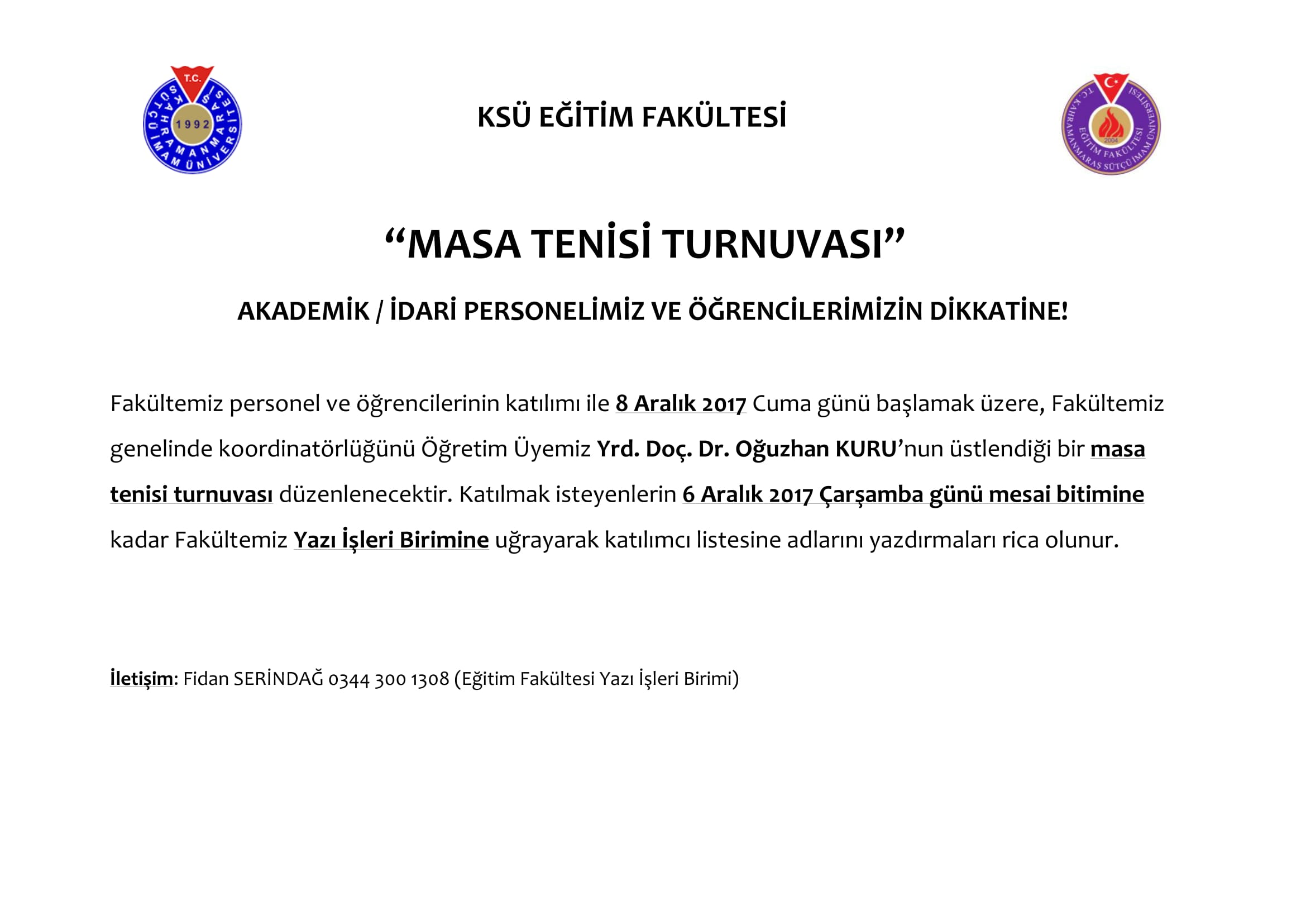 01.12.2017 - ÇAĞRI: Masa Tenisi Turnuvası