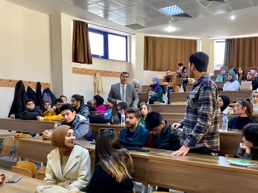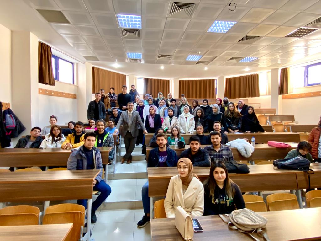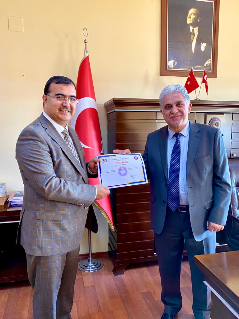 29 Aralık 2022 Perşembe günü Yusuf Has Hacip Amfisinde Kahramanmaraş İl Milli Eğitim Müdürü Sn. Yusuf KAHRAMAN, Fakültemiz öğrencilerine yönelik "Öğretmenliğin Dünü ve Bugünü" konulu bir söyleşi gerçekleştirdi. Söyleşi bitiminde öğrencilerimizin sorularını yanıtlayan Sn. KAHRAMAN'a Dekanımız Prof. Dr. Mustafa YAZICI tarafından Teşekkür Belgesi takdim edildi. Fakültemizi ziyareti ve gerçekleştirmiş olduğu söyleşi ile öğrencilerimizin mesleki gelişimine sağlamış olduğu değerli katkılardan dolayı Sn. İl Milli Eğitim Müdürümüz ile etkinliğe katılım sağlayan öğrencilerimize teşekkür eder, esenlikler dileriz.