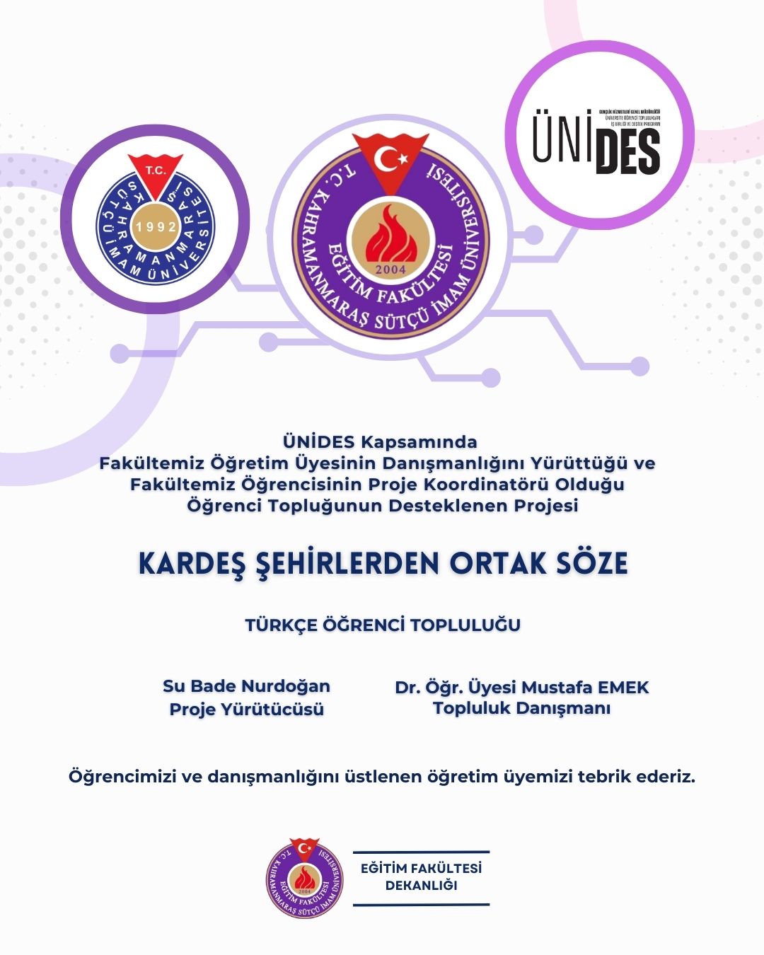 ÜNİDES Kapsamında Eğitim Fakültesi Bünyesindeki Öğretim Üyelerinin ve Öğrencilerinin Dahil Olduğu Öğrenci Topluluk Projeleri Destek Almaya Hak Kazandı!