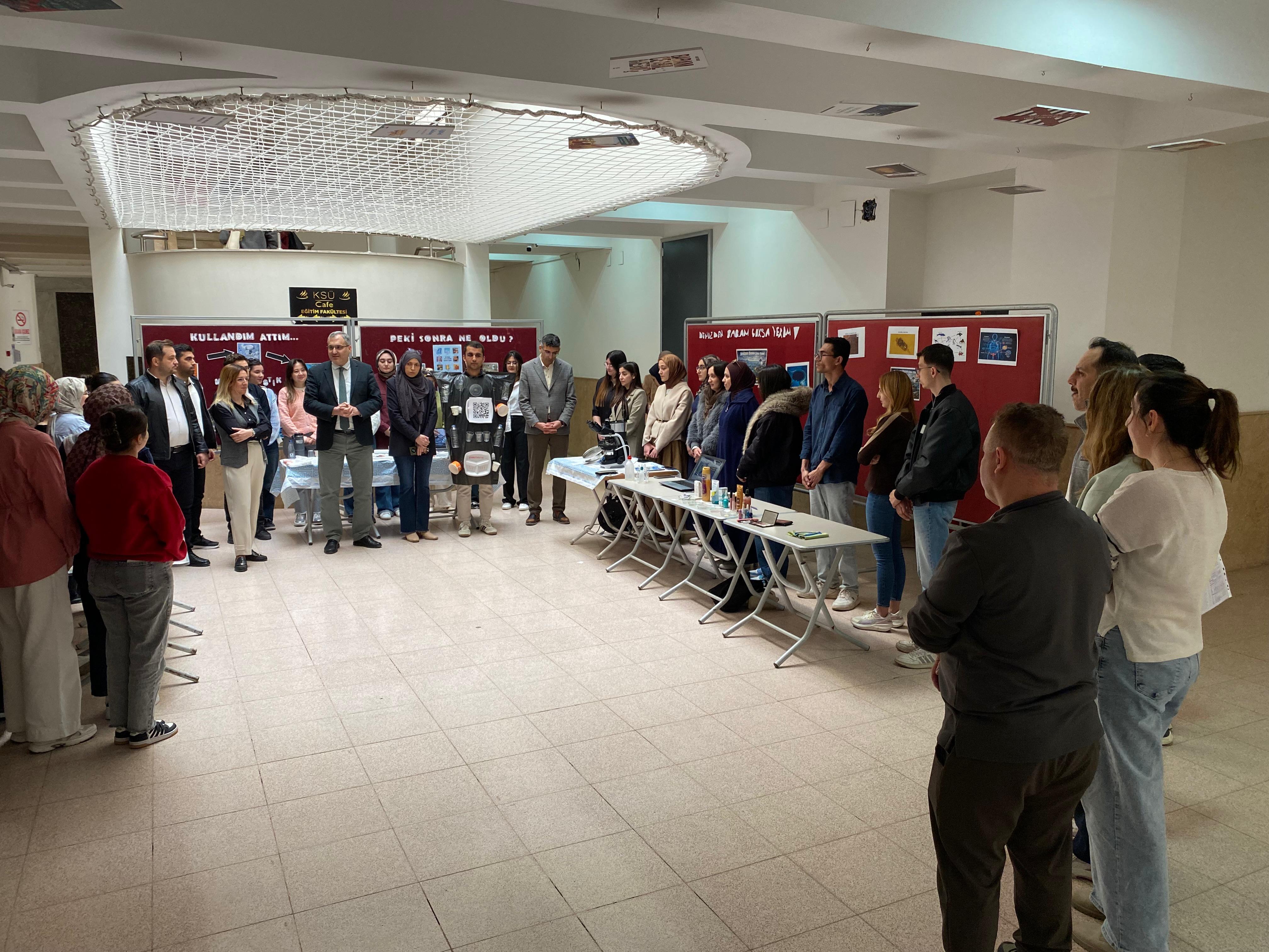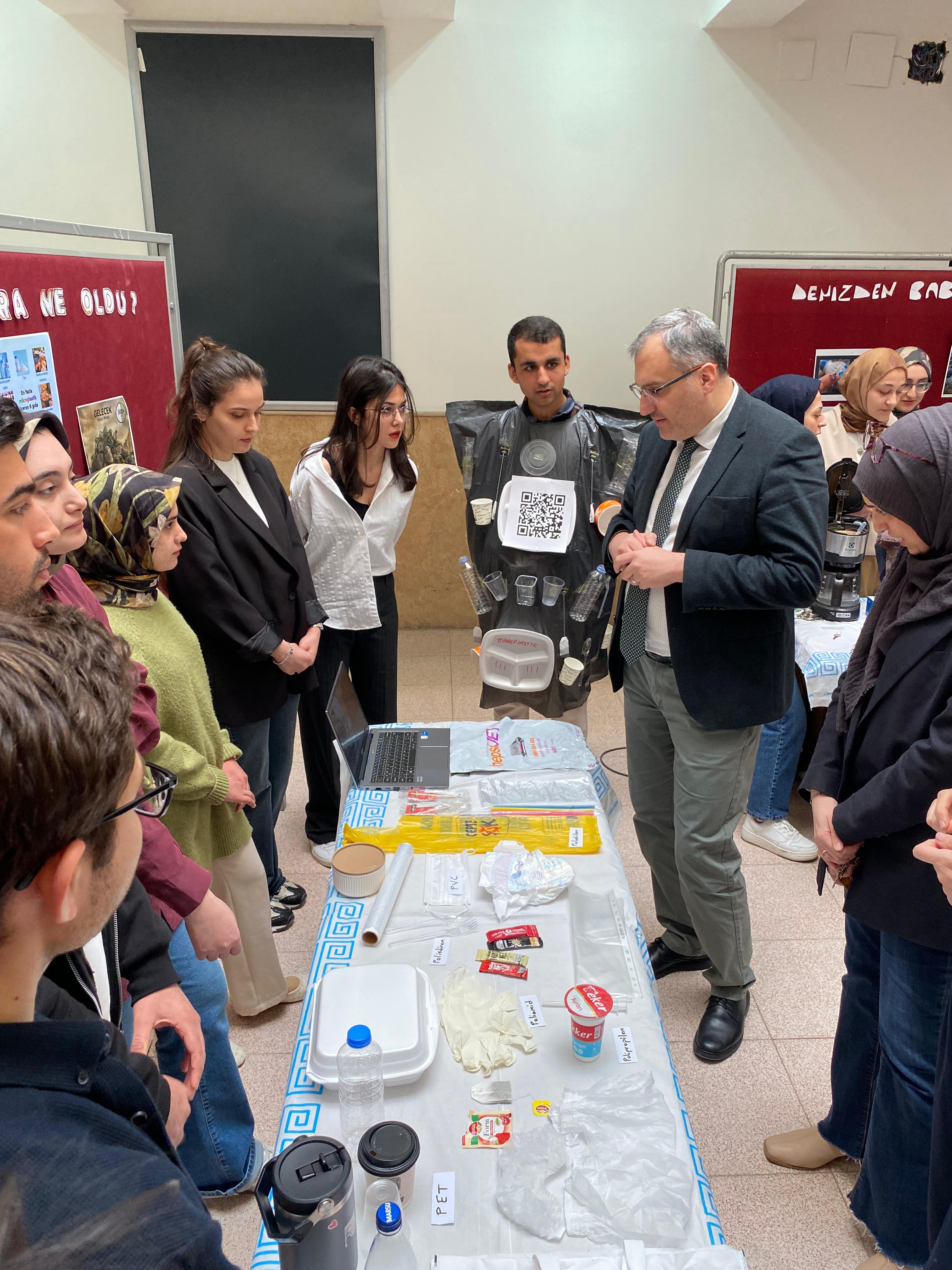 Dekanımızın açılış konuşmasıyla başlayan sergide, günlük hayatta kullandığımız makyaj malzemeleri, giydiğimiz kıyafetler ile tükettiğimiz yiyecek ve içeceklerin dahi yüksek oranda mikroplastik içerebildiği vurgulanarak bu konuda toplumsal farkındalık oluşturulması amaçlandı.