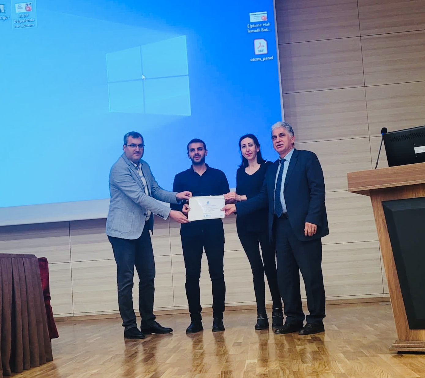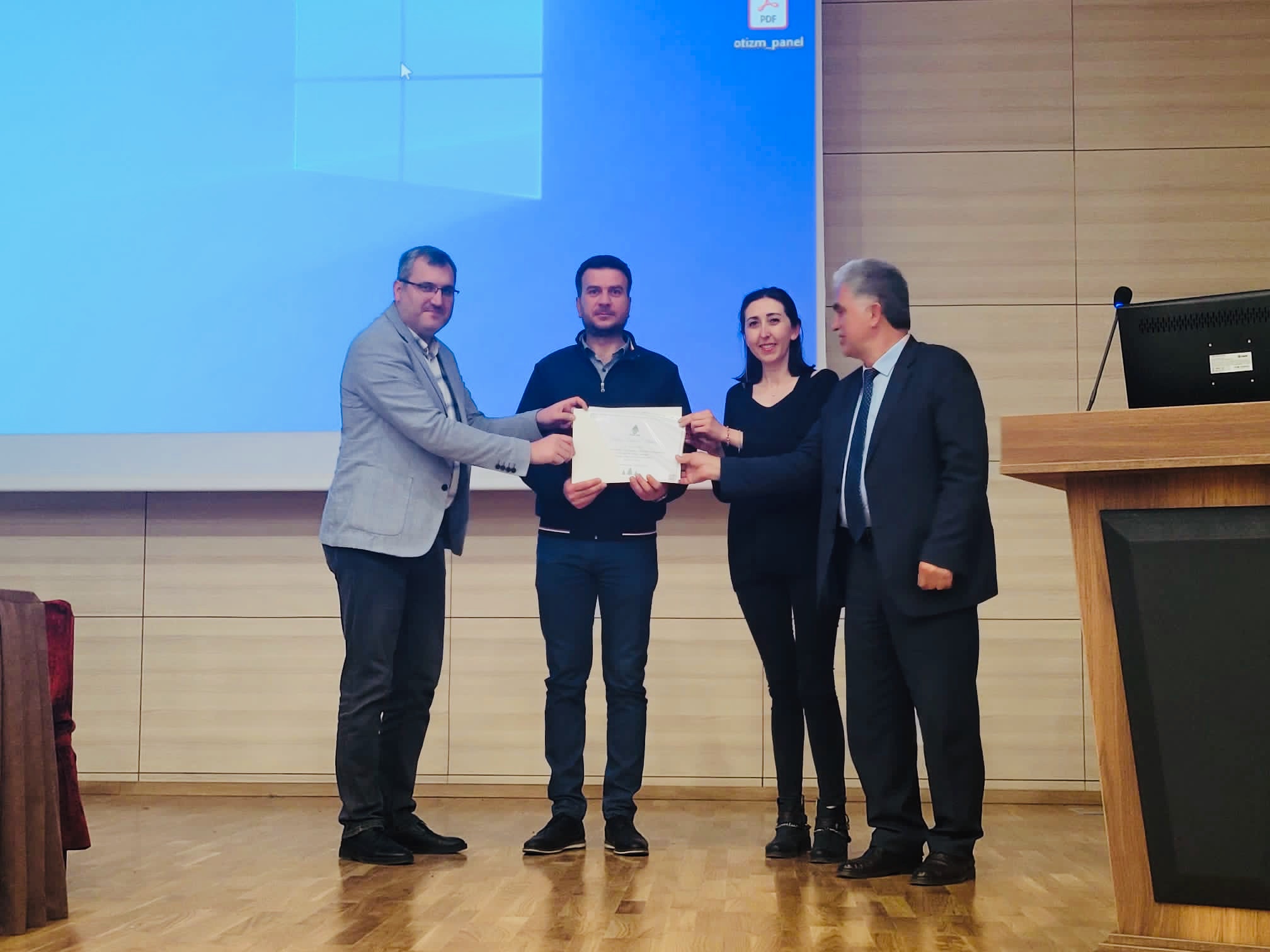 Katılımcıların sorularının cevaplandırılmasının ardından konuşmacılara teşekkür belgeleri takdim edildi. Oturum bitiminde, otizmli bireylerin resimlerinden oluşan sergi ile otizmli bir birey olan Sn. Recep Oğuz KEMENT tarafından kaleme alınan kitabın yer aldığı stant katılımcıların beğenisine sunuldu.